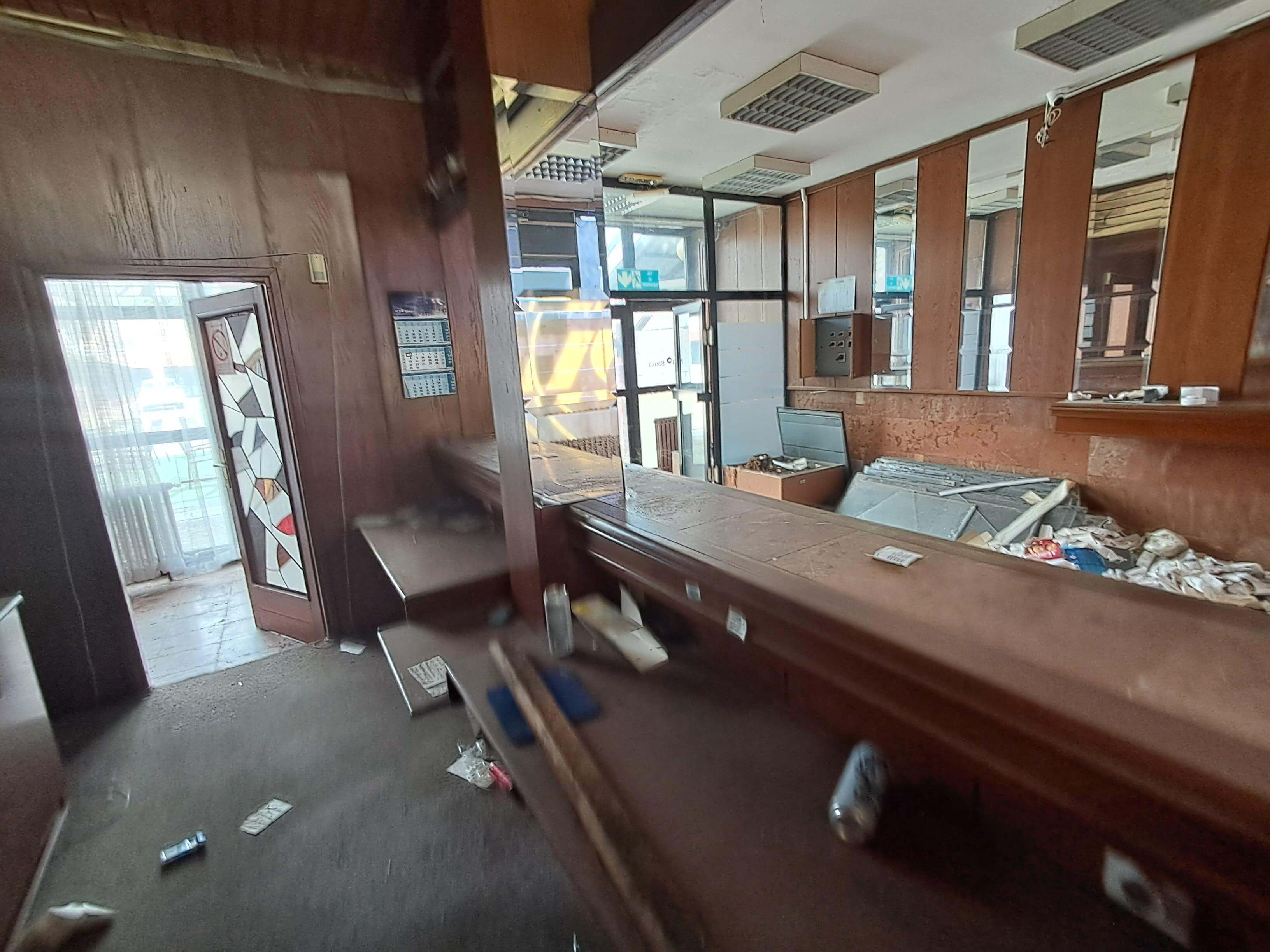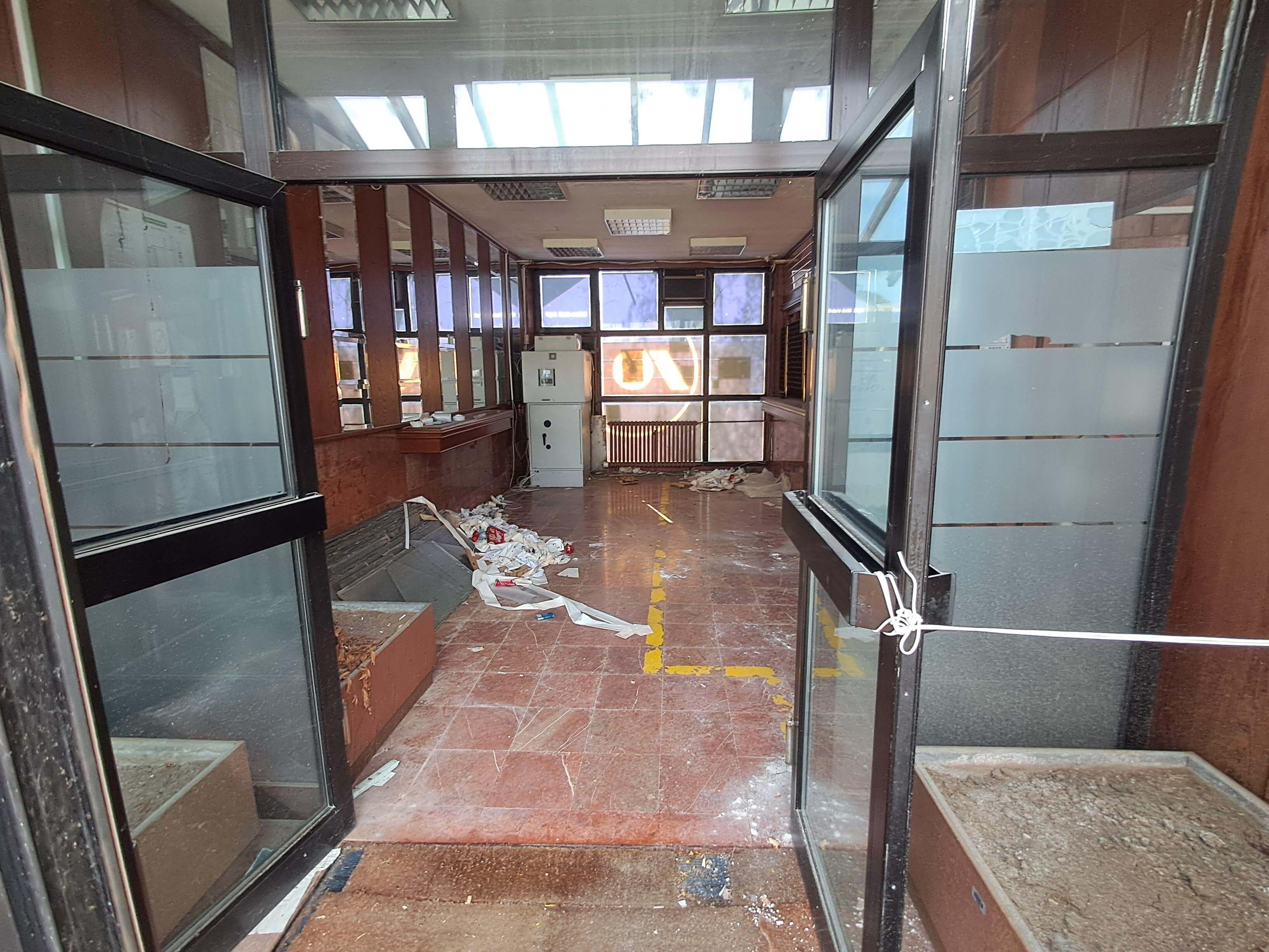 Poslovni prostor se sastoji od šalter sale sa pratećim prostorijama: kancelarije, kuhinja, mokri čvor, trezor, bankomat.